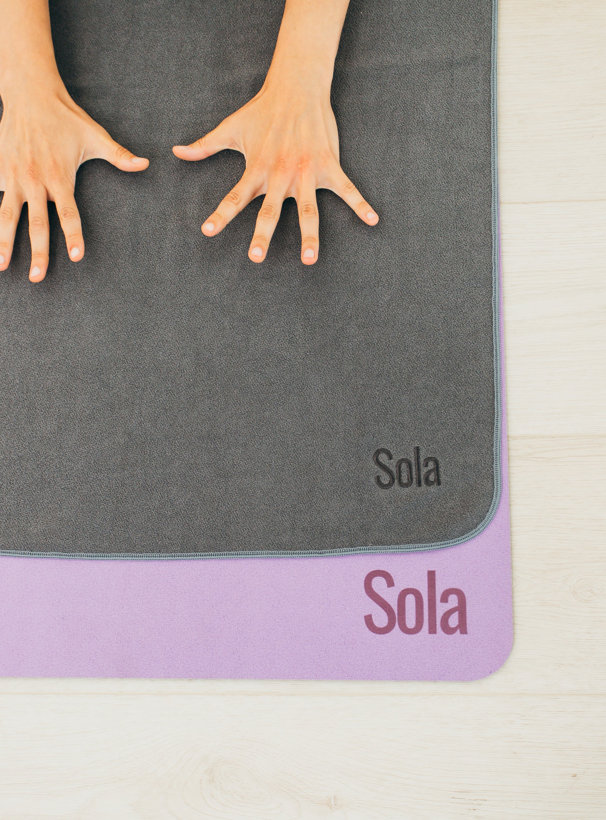 Its textured surface provides moisture-activated grip that improves traction as you sweat, while rounded edges, designed to fit the dimensions of your Sola mat, keep your space looking clean.